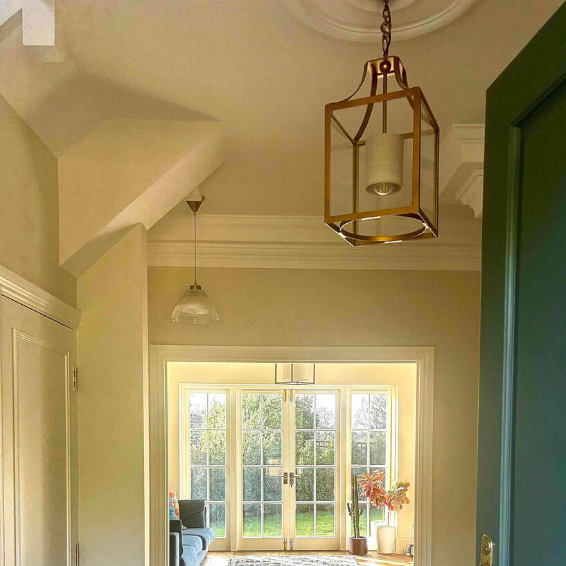 Wall lights, lanterns, and fittings selected to complement cornicing, fireplaces, and high ceilings